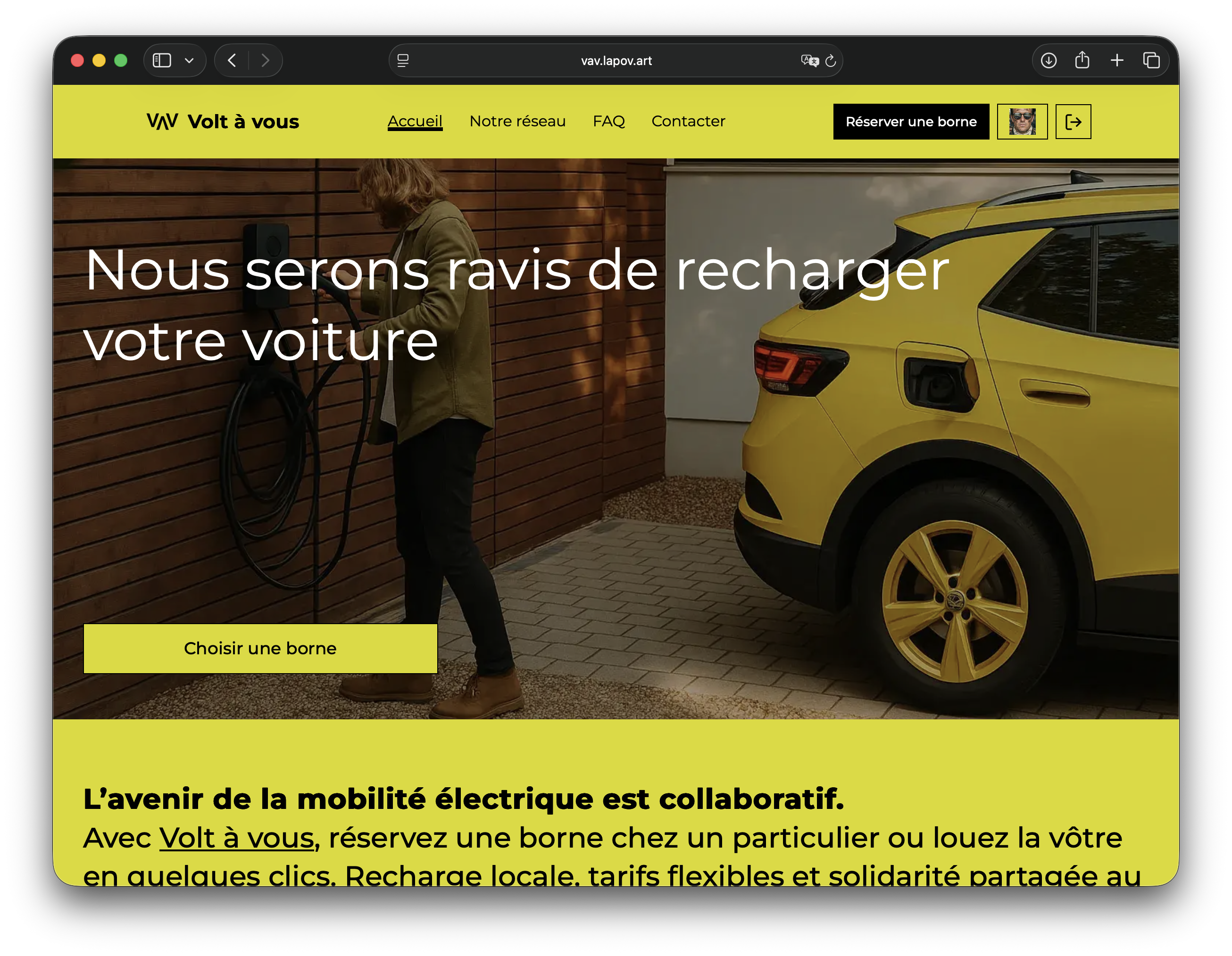 Face à l'essor de la mobilité électrique et à la sous-utilisation des bornes domestiques, Volt à vous met en relation propriétaires de bornes et conducteurs de véhicules électriques. Côté front, Angular 20 avec composants standalone, Signals et Tailwind CSS 4 offrent une SPA réactive et accessible ; côté back, Spring Boot 3.5 (Java 21), Spring Security et Spring Data JPA exposent une API REST documentée via Swagger UI.